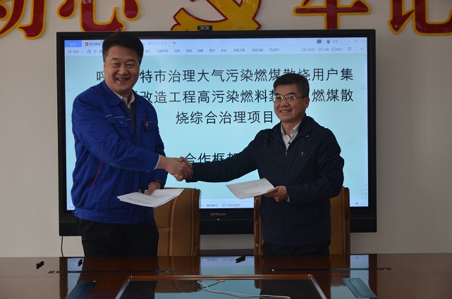 4月15日上午,城發(fā)公司與賽罕區(qū)政府、新城區(qū)政府簽訂《呼和浩特市大氣污染燃煤散燒用戶集中供暖改造工程高污染燃料禁燃區(qū)燃煤散燒綜合治理項(xiàng)目合作框架協(xié)議》。城發(fā)公司總經(jīng)理呂德育、副總經(jīng)理吳利勤、總經(jīng)理助理朱大偉、總工程師胡月在等相關(guān)部門(mén)人員參加了簽訂儀式。