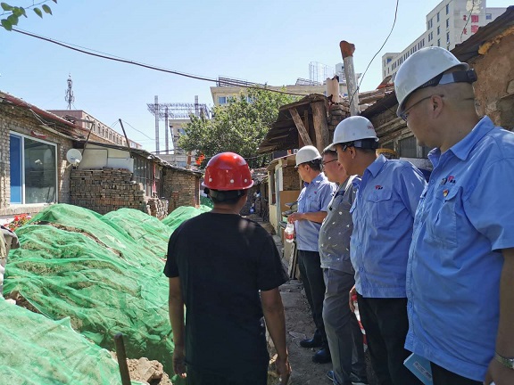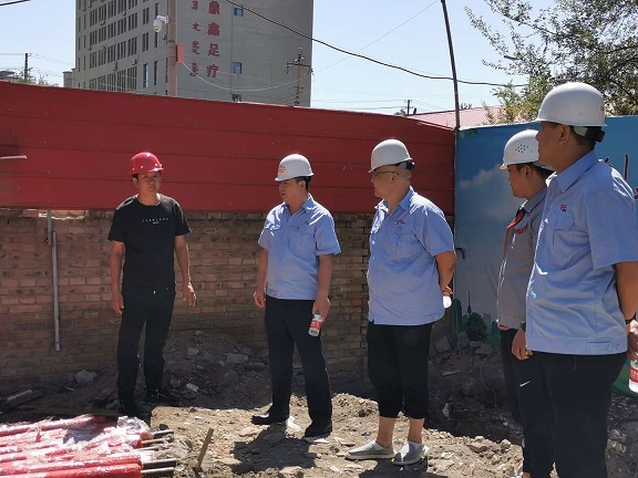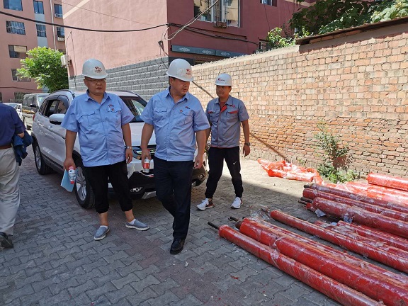 在三合村供熱分公司68號(hào)院木器廠平房區(qū)接入集中供熱項(xiàng)目施工現(xiàn)場,檢查人員詳細(xì)查看了工程的進(jìn)展及各崗位施工人員的安全設(shè)施配備情況,并詢問管材、管件等材料到位時(shí)限等情況。