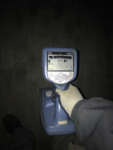 現(xiàn)場了解到,漏水檢測單位根據(jù)對熱力站內(nèi)分集水器環(huán)路壓降情況進行排查,初步確定失水環(huán)路,再通過聲波排查和借助對污水管道的排查確定失水區(qū)域,最后通過使用管線探測定位儀和管線漏水測漏儀精準(zhǔn)確定漏點位置,進行鉆孔探測和標(biāo)記,以備搶修施工人員開挖維修。