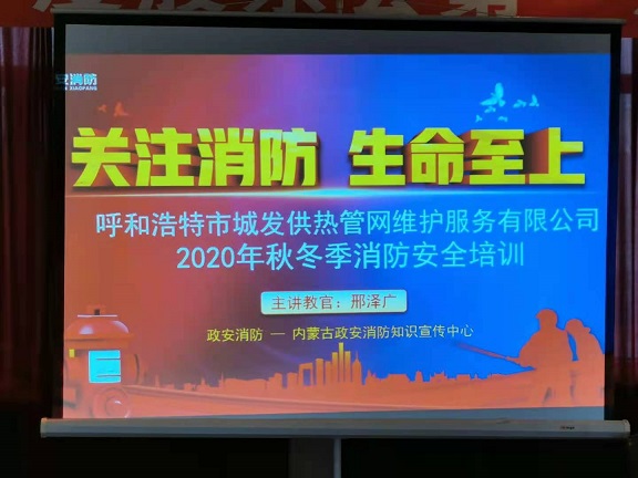 培訓會上,邢澤廣教官以“生命至上 關注消防”為主題,結合公司制定的《呼和浩特市城發(fā)供熱管網(wǎng)維護服務有限公司2020年冬春火災防控工作實施方案》,并通過具體案例分析,對遇到火災的正確處理方式等內容進行了詳細、全面的講解,同時精心準備了具有實際教育意義的小視頻課件。