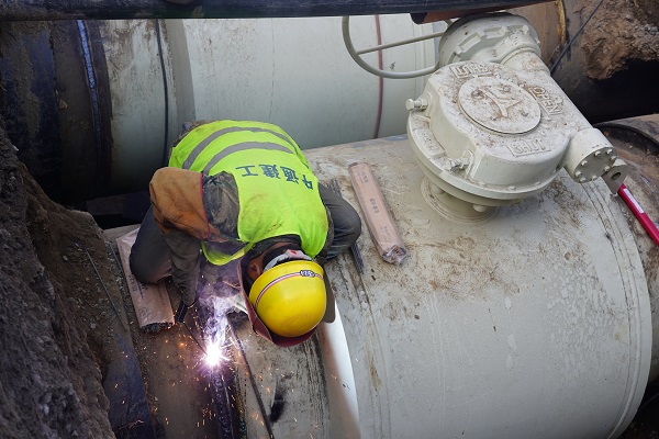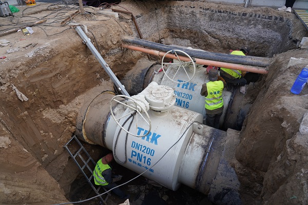 在金橋路一次管網(wǎng)改造施工現(xiàn)場,筆者看到DN1200主管線的球閥焊接工作已接近尾聲。據(jù)介紹,之后將陸續(xù)進(jìn)行探傷、保溫、閥門井砌筑等工程。該處工程是在主管網(wǎng)加裝管道閥門,起到對主線關(guān)斷的作用,在冬季供暖期遇到突發(fā)事件可避免造成大面積停供,有效保障金橋區(qū)域今冬的正常供暖,預(yù)計(jì)9月中旬完工。