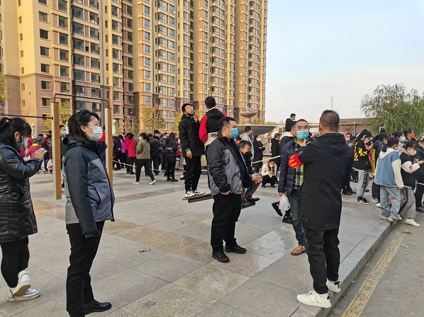 一行人還與小區(qū)居民進(jìn)行了交流,小區(qū)居民表示,在物業(yè)工作人員的安排下核算檢測(cè)迅速有序,大家都愿意積極配合小區(qū)防疫工作。