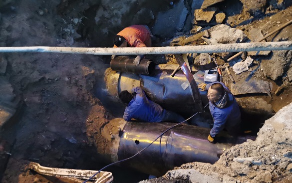 此次搶修采用DN800管道做"袖套"進(jìn)行管道焊接修復(fù),為整個搶修爭取了近1天的時間,最大程度保障了轄區(qū)熱用戶的供暖,為百姓的冬天筑起了一道最有力、最堅固的溫暖防線。