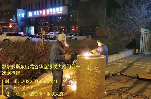 為確保用戶盡快恢復(fù)供熱,搶修人員相互配合,放棄休息,全力以赴進(jìn)行搶修,經(jīng)過30小時作業(yè),終于順利完成漏點修復(fù),于1月3日21時30分,一次管網(wǎng)恢復(fù)供熱。尚東楓景、竹園東區(qū)、玉錦軒、巨海城八區(qū)等100萬平方米熱用戶的溫暖得到了保障。而由于長時間的不停歇焊接,漏點修復(fù)后,焊接人員的手都腫了無法伸直。