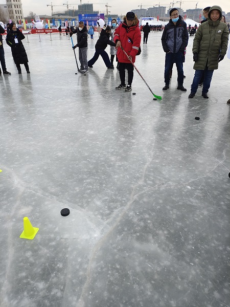 運(yùn)動(dòng)會(huì)設(shè)置了冰球射擊、雪圈投擲、冰車大作戰(zhàn)、冰壺撞擊、抽冰陀螺5個(gè)項(xiàng)目,形式簡(jiǎn)單、易于參與、趣味性強(qiáng)?,F(xiàn)場(chǎng),冰壺、冰球射門設(shè)施擺滿了整個(gè)場(chǎng)地,職工們躍躍欲試。運(yùn)動(dòng)會(huì)上,集團(tuán)公司運(yùn)動(dòng)員不懼嚴(yán)寒,團(tuán)結(jié)一致、相互鼓勵(lì),充分享受著運(yùn)動(dòng)帶來(lái)的樂趣,也在運(yùn)動(dòng)中加深了對(duì)冰雪運(yùn)動(dòng)的熱愛與了解。