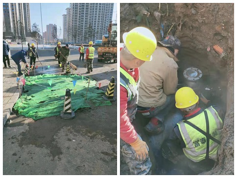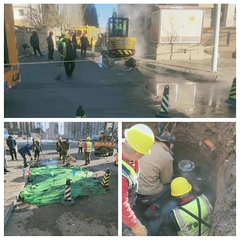 大年初二這天早上,富泰熱力公司巴彥分公司廠區(qū)門(mén)口路面滲水,疑似一次網(wǎng)發(fā)生跑水。得知這一情況后,分公司檢修所工作人員在對(duì)跑水位置進(jìn)行初步判斷后,立即聯(lián)系了安裝分公司。嚴(yán)陣以待的安裝分公司搶修隊(duì)員第一時(shí)間趕往現(xiàn)場(chǎng),發(fā)現(xiàn)現(xiàn)場(chǎng)有配電箱,地下有電纜、天然氣管,機(jī)械開(kāi)挖比較危險(xiǎn),于是人工對(duì)路面進(jìn)行開(kāi)挖,進(jìn)一步尋找漏點(diǎn)。經(jīng)過(guò)查找,發(fā)現(xiàn)是一次網(wǎng)上一個(gè)50抽頭發(fā)生跑水,他們不顧刺骨寒風(fēng)帶水作業(yè),給抽頭焊接了一個(gè)150的套管,又在套管上安裝了一個(gè)150的法蘭球閥,等做好保溫回填地面后,已經(jīng)是第二天凌晨4點(diǎn)了。大年初五,安裝分公司又接到了左右城小區(qū)跑水搶修任務(wù)。由于施工難度較大,搶修隊(duì)員們一刻不停歇的干了一天才完成任務(wù),及時(shí)恢復(fù)了供暖。