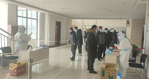 2月17日下午1點(diǎn),惱包園區(qū)全員核酸檢測(cè)正在緊張有序的進(jìn)行中,為做到不聚集扎堆,將檢測(cè)點(diǎn)設(shè)置在信息大廳門外,以確保通風(fēng)。依次劃分為4個(gè)區(qū)域,各區(qū)域都張貼了引導(dǎo)標(biāo)識(shí),放置了人流隔離設(shè)施,分時(shí)段依次檢測(cè)。