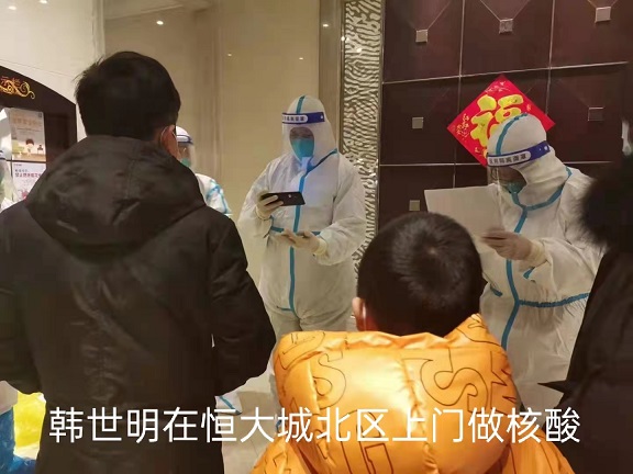 韓世明所居住的小區(qū)是出現(xiàn)確診病例比較早的小區(qū),社區(qū)第一時(shí)間對(duì)小區(qū)進(jìn)行了封控。當(dāng)聽到消息的第一時(shí)間,韓世明便向公司報(bào)備,然后配合社區(qū)進(jìn)行核酸檢測,當(dāng)他知道社區(qū)缺少人手,而他核酸檢測是陰性后,毅然決然的到社區(qū)報(bào)道參加志愿者。由于是高風(fēng)險(xiǎn)小區(qū),他們的工作量比其他地方要大的很多,早上五六點(diǎn)就開始做準(zhǔn)備工作,有時(shí)候甚至凌晨還在工作,看到他的朋友圈志愿者忙碌的身影,嚴(yán)格有序的入戶排查,一遍又一遍的清理消毒,很好的詮釋了什么是默默無聞,無私奉獻(xiàn)。