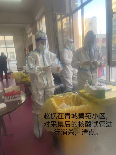 趙楓的工作是對(duì)核酸采集好的試管進(jìn)行消毒處理然后清點(diǎn),她所在小區(qū)居民大概900多人,每天的工作量不僅大,而且需要非常細(xì)心。剛開始的時(shí)候志愿者輪換崗位進(jìn)行工作,由于其他志愿者不熟悉工作導(dǎo)致試管排序有誤,她主動(dòng)提出來幫助清點(diǎn),進(jìn)過兩個(gè)小時(shí)的細(xì)心的盤點(diǎn)終于理清了,從此之后她就一直進(jìn)行這項(xiàng)需要耐心和細(xì)心的工作。這也正是她對(duì)生活和工作的真實(shí)寫照,對(duì)生活她保持熱愛之心,積極向上;對(duì)工作一絲不茍,勇往直前,身上擔(dān)著的是責(zé)任,亦是榮幸。
