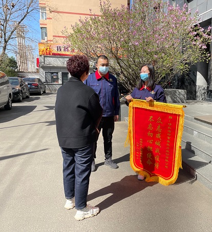 近日,賽罕區(qū)人民路街道辦事處健康社區(qū)黨支部書記鄭嬌把一面印有"眾志成城戰(zhàn)疫情 不忘初心擔使命"的錦旗送到富泰熱力公司事務管理中心,對疫情防控期間協(xié)助配合他們工作,并為他們送去所需物資的事跡表達謝意。
