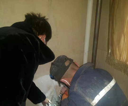 去年12月21號,玉泉分公司首站熱力站失水量突然加大,工作人員迅速開始下地溝排查,在排查到文化大院南樓時(shí)發(fā)現(xiàn),是東單元一樓中戶家穿樓管因年久腐蝕嚴(yán)重導(dǎo)致跑水,工作人員當(dāng)即聯(lián)系到了該熱用戶,入戶查看后發(fā)現(xiàn),由于之前該用戶在裝修房屋時(shí)將穿樓管包進(jìn)了訂制的櫥柜內(nèi),要想更換管道必須刨開一部分地面并拆除一部分櫥柜才可以,一樓熱用戶要求樓上其他熱用戶共同承擔(dān)恢復(fù)費(fèi)用,工作人員多次協(xié)調(diào)樓上熱用戶未果后,只好關(guān)閉了該棟樓廚房一環(huán)暖氣并給熱用戶留下了電話號碼,待大家商量好再來為他們更換管道。"我們幾家已經(jīng)商量通了,麻煩你們抽時(shí)間來給換換管子。"4月23日,玉泉分公司工作人員接到了一樓熱用戶的電話。副所長趙雷和同事準(zhǔn)備好工具立即來到熱用戶家中,泄水、拆櫥柜、破地面……經(jīng)過一整天的忙碌,他們克服了空間狹小、操作不便等困難,更換了4米長的兩段管道,同時(shí)為熱用戶恢復(fù)了地面,熱用戶連聲道謝。