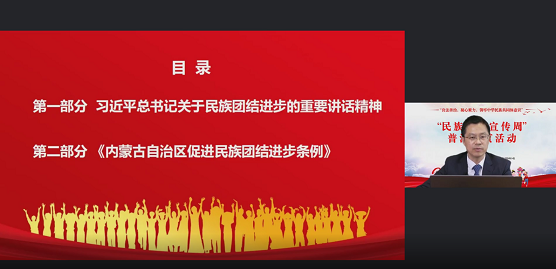 本次培訓(xùn)以良法善治,凝心聚力,鑄牢中華民族共同體意識(shí)為主題,中國(guó)政法大學(xué)劉東剛博士圍繞習(xí)近平總書記關(guān)于民族團(tuán)結(jié)進(jìn)步的重要講話指示精神、《中國(guó)共產(chǎn)黨統(tǒng)一戰(zhàn)線工作條例》《內(nèi)蒙古自治區(qū)促進(jìn)民族團(tuán)結(jié)進(jìn)步條例》《中華人民共和國(guó)國(guó)家通用語(yǔ)言文字法》《內(nèi)蒙古自治區(qū)實(shí)施〈中華人民共和國(guó)國(guó)家通用語(yǔ)言文字法〉辦法》《民族區(qū)域自治法》《城市民族工作條例》的重點(diǎn)亮點(diǎn)內(nèi)容進(jìn)行了解讀。