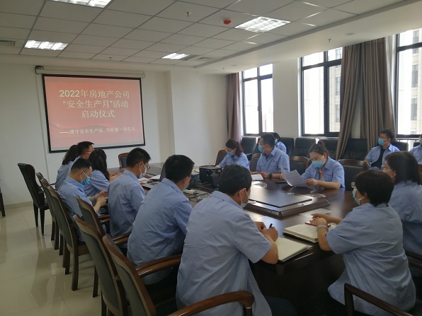 全國第21個"安全生產(chǎn)月"到來之際,房地產(chǎn)公司于6月1日下午,在11樓會議室舉行了以"遵守安全生產(chǎn)法 當好第一責(zé)任人"為主題的"安全生產(chǎn)月"啟動儀式。公司各處室負責(zé)人及工程處全體人員參加了本次活動。