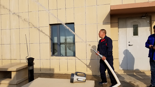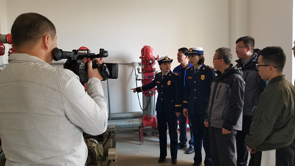 取景地點主要是有監(jiān)控室、報警閥室和消防高位水箱間。在拍攝期間城發(fā)房地產公司工程處處長趙國棟和暖通專業(yè)工程師楊建剛詳細介紹了消防聯動控制器是如何監(jiān)控火情后反饋信息,又是如何處理后續(xù)問題的運行程序以及高位水箱穩(wěn)壓系統的工作原理。最后,在樓頂測試了消防給水系統的給水壓力是否達標。測試結果達到了10m充實水柱的標準。