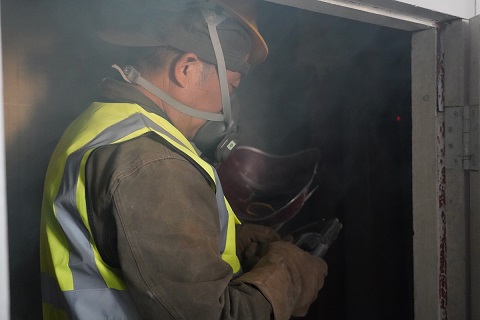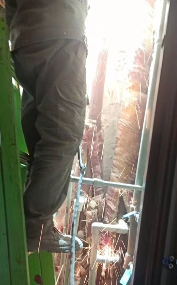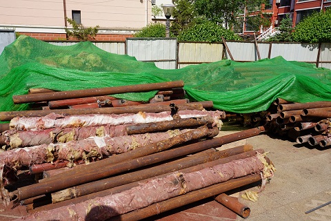 5月17日,筆者來到開天花園小區(qū)的供熱二次管網(wǎng)改造施工現(xiàn)場。在高層單元樓的管道井里,工人正在狹窄的空間里作業(yè),將單元樓道內(nèi)的立管進行切割拆除。在施工材料現(xiàn)場,西北角堆滿了拆除下來的地溝管,部分管道腐蝕嚴重,布滿了密密麻麻的窟窿眼兒;東北角堆放了新到的管材,工人們正在進行單元立管外表的打磨工作,打磨完成后再進行粉刷兩遍防腐漆。