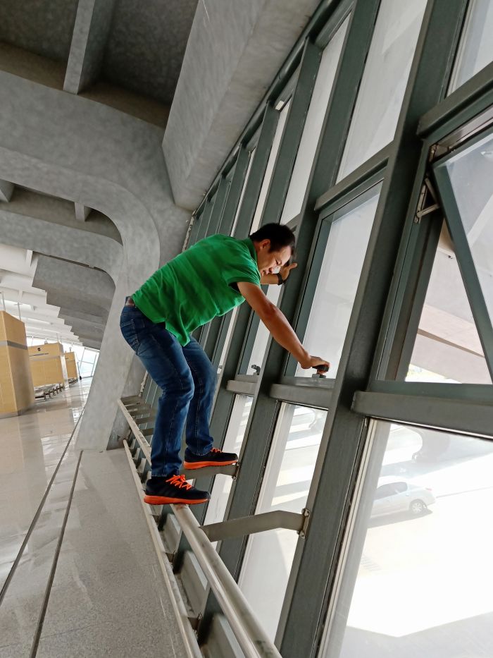 主站樓部分是攻堅之戰(zhàn),30位員工在透明的頂棚下感受悶熱灼曬、揮汗如雨,每一塊地磚都是經(jīng)過了水沖、塵推、除塵、清洗、抹凈、擦干等六道工序,方可達標。上下兩層共26912平方米,經(jīng)過兩天半的時間終于完工,看著光亮如新、纖塵不染的候車廳,所有員工的臉上都綻放了發(fā)自內(nèi)心的微笑。