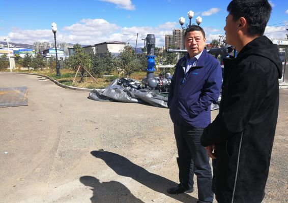在財(cái)政廳東站景泰小區(qū)供熱管網(wǎng)項(xiàng)目收尾施工現(xiàn)場(chǎng),副經(jīng)理任強(qiáng)向負(fù)責(zé)該項(xiàng)目的施工負(fù)責(zé)人詢問了施工的具體情況,對(duì)項(xiàng)目工作進(jìn)展情況給予充分肯定。