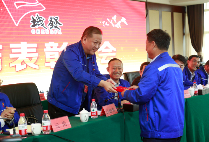 會(huì)上,城發(fā)公司班子成員為獲得先進(jìn)集體、先進(jìn)生產(chǎn)(工作)者、優(yōu)秀管理人員、先進(jìn)黨支部、優(yōu)秀黨務(wù)工作者和優(yōu)秀共產(chǎn)黨員的職工代表進(jìn)行頒獎(jiǎng)并予以鼓勵(lì)。在2018年生產(chǎn)、經(jīng)營(yíng)、建設(shè)、管理工作中,授予王觀法同志2018年度優(yōu)秀高層管理人員榮譽(yù)稱號(hào);授予胡日查等15名同志2018年度優(yōu)秀中層管理人員榮譽(yù)稱號(hào);授予橋靠分公司等17個(gè)單位2018年度先進(jìn)集體稱號(hào);授予劉堅(jiān)等79名員工為2018年度先進(jìn)生產(chǎn)(工作)者稱號(hào)。